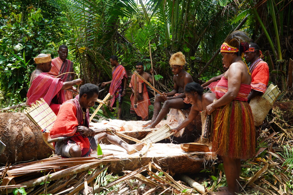 Other programs include EcoNusa’s initiative to secure fair prices for copra farmers and KALEKA’s work to open international markets for sustainable nutmeg products. In many villages, Indigenous women lead sago processing, reinforcing food security and embodying ecological sovereignty.