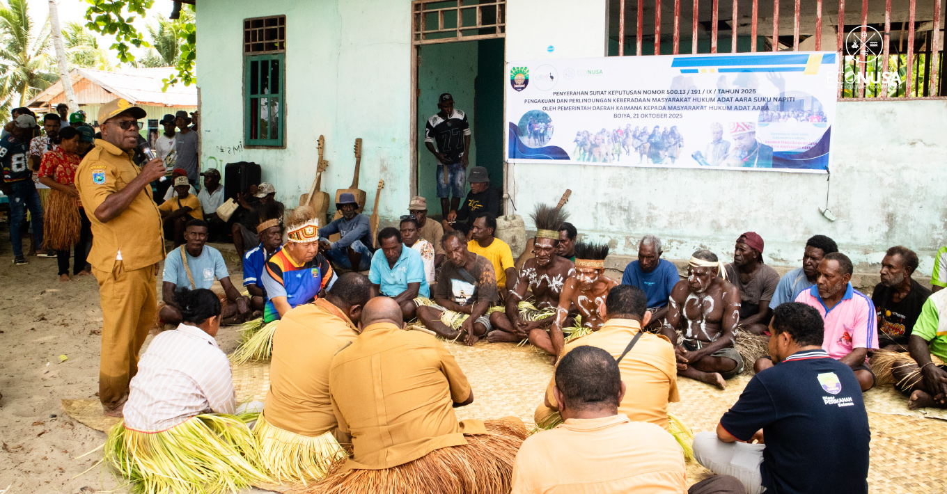 Pemerintah Kabupaten Kaimana, Papua Barat menetapkan pengakuan dan perlindungan terhadap Masyarakat Hukum Adat Aara Suku Napiti di Kampung Lakahia, Distrik Teluk Etna, melalui Keputusan Bupati Nomor 500.13/191/IX/2025 pada 21 Oktober 2025. Langkah ini menjadi bentuk penghargaan atas keberadaan masyarakat adat yang selama turun-temurun menjaga tanah, laut, dan hutan mereka di wilayah seluas 95 ribu hektare lebih. Wilayah adat Aara terbentang dari hutan mangrove hingga perairan Laut Arafura, menjadi ruang hidup yang kaya akan budaya dan kearifan lokal. Masyarakat Aara dikenal dengan bahasa Kamoro serta tradisi Sasi (Eerera)—aturan adat yang mengatur pemanfaatan sumber daya alam agar tetap lestari. Mereka juga menjaga warisan budaya seperti rumah adat, tifa, dan ukiran yang sarat makna. Pengakuan ini menandai langkah penting dalam memperkuat peran masyarakat adat sebagai penjaga alam dan identitas budaya di tanah Papua Barat.